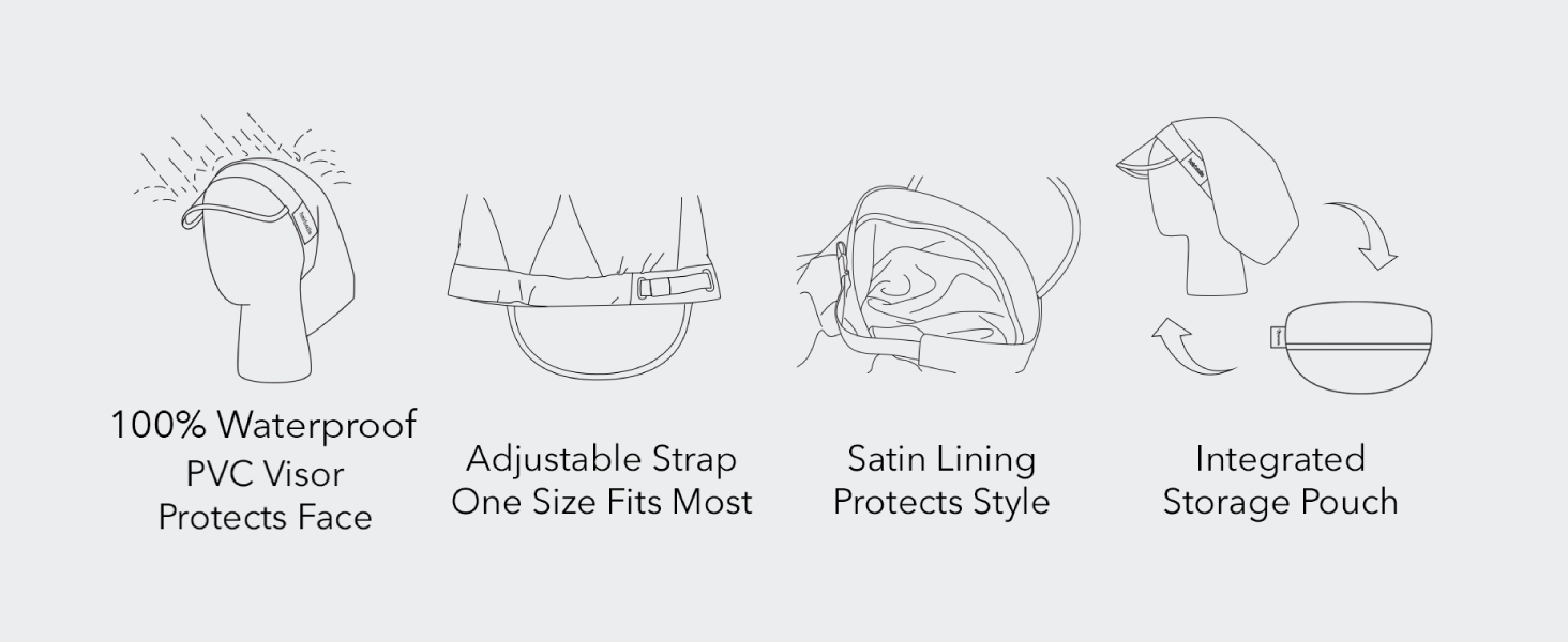 Meet the Hairbrella—the first-ever satin-lined rain hat that’s as stylish as it is protective. Guaranteed to keep your hair dry and style protected, no matter the forecast!