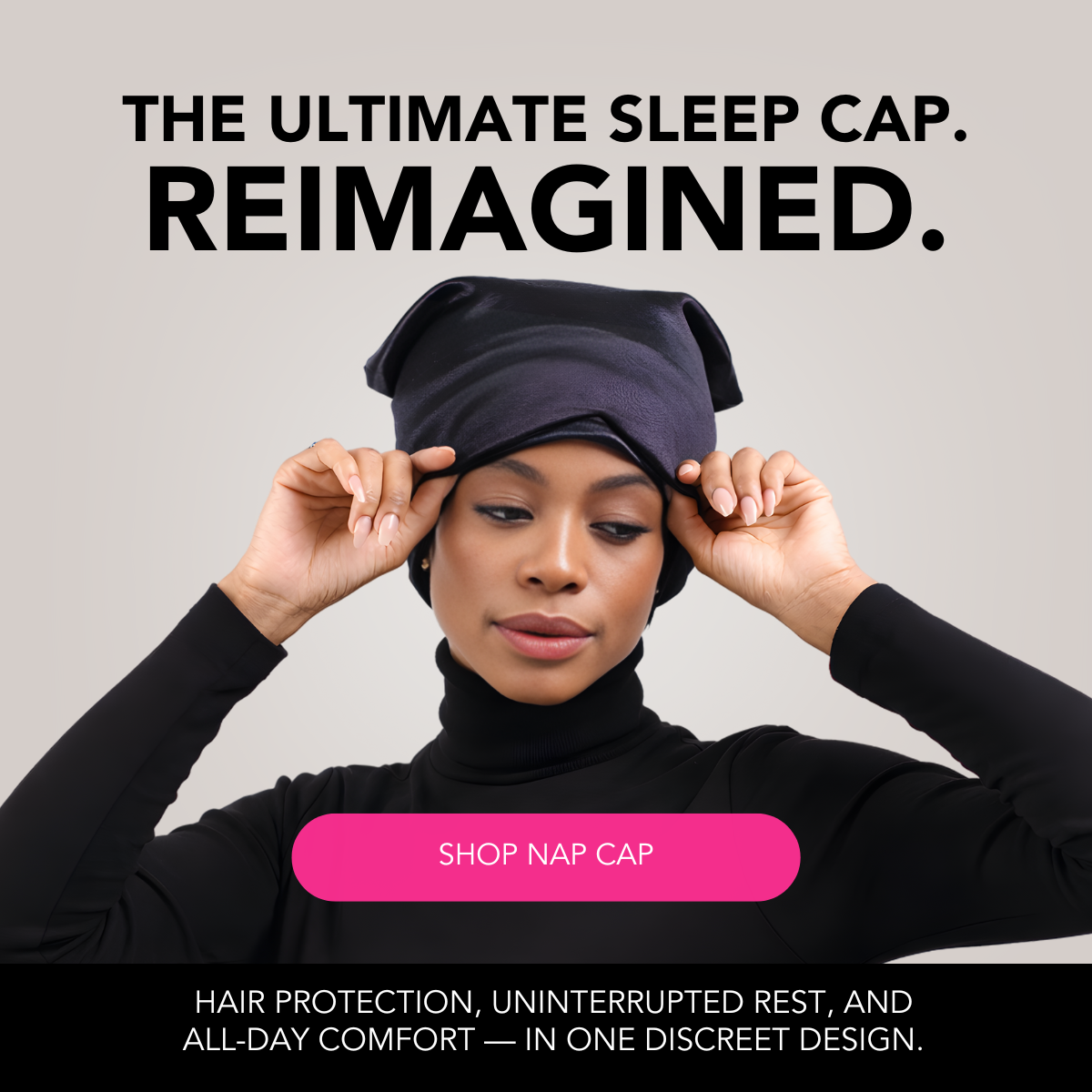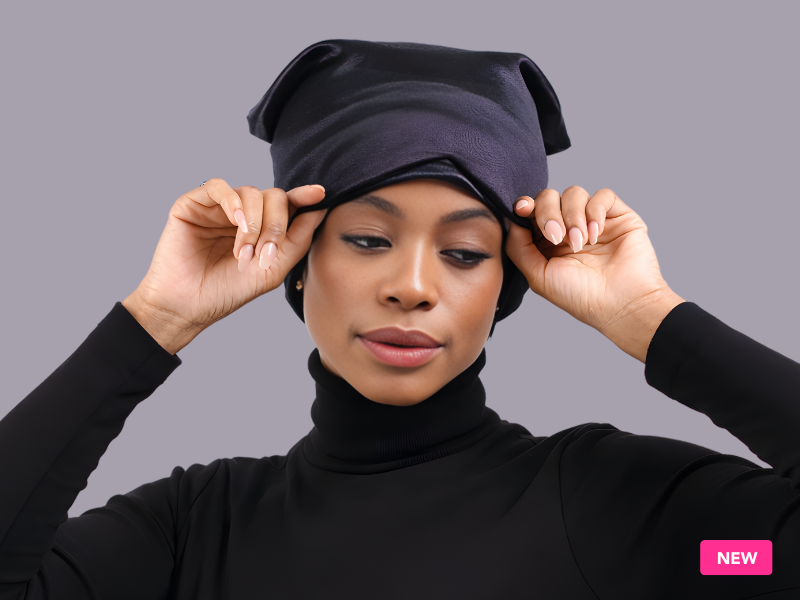 A satin-lined sleep cap with a built-in plush cooling satin eye mask, thoughtfully designed for sleep, travel, spa days, meditation, and everyday downtime.