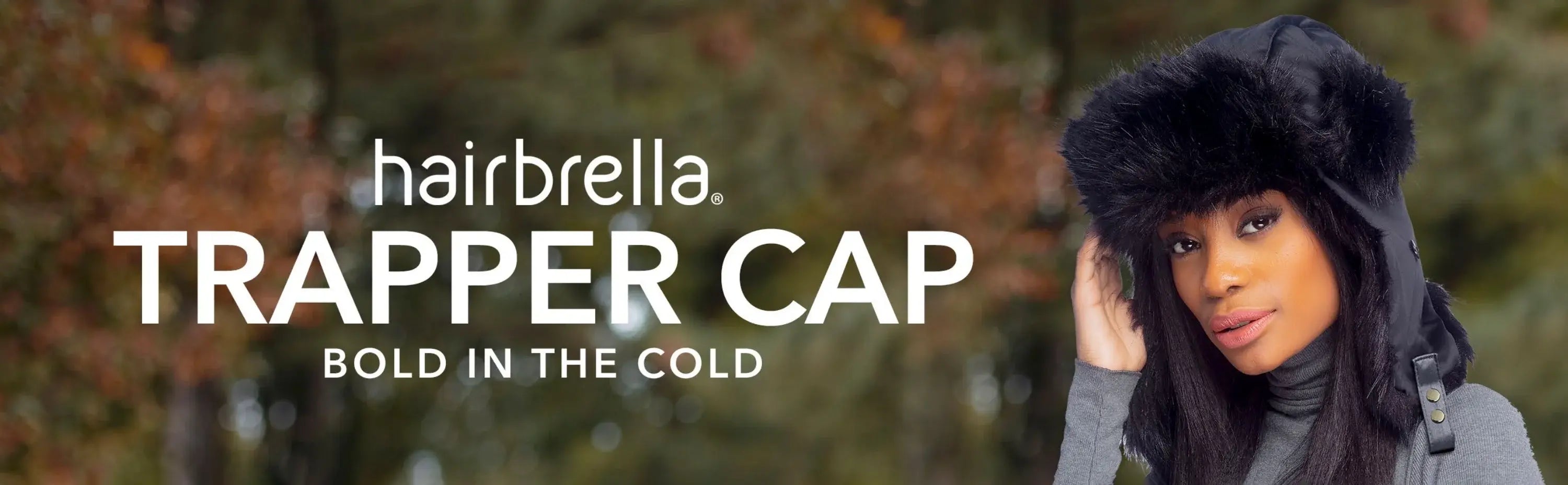 The Hairbrella Unisex Trapper Cap features a chin strap to keep it in place even on the most windy day.