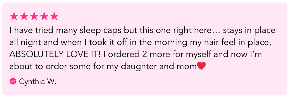 “I’ve finally found a sleep cap that doesn’t slip off! My hair has never looked better in the morning.”