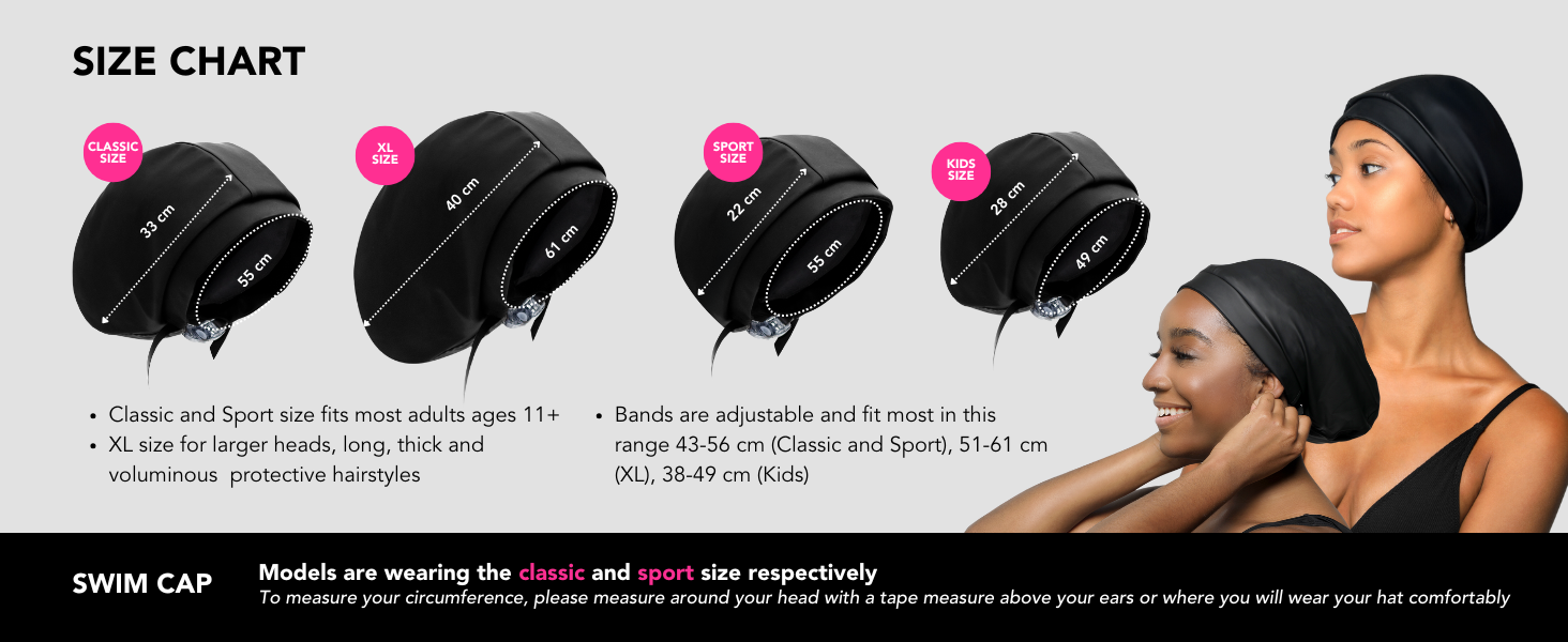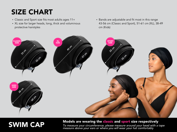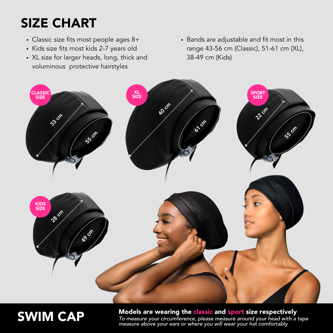 Introducing the world's first satin-lined and adjustable swim cap designed to keep your hair dry and style protected, even underwater!