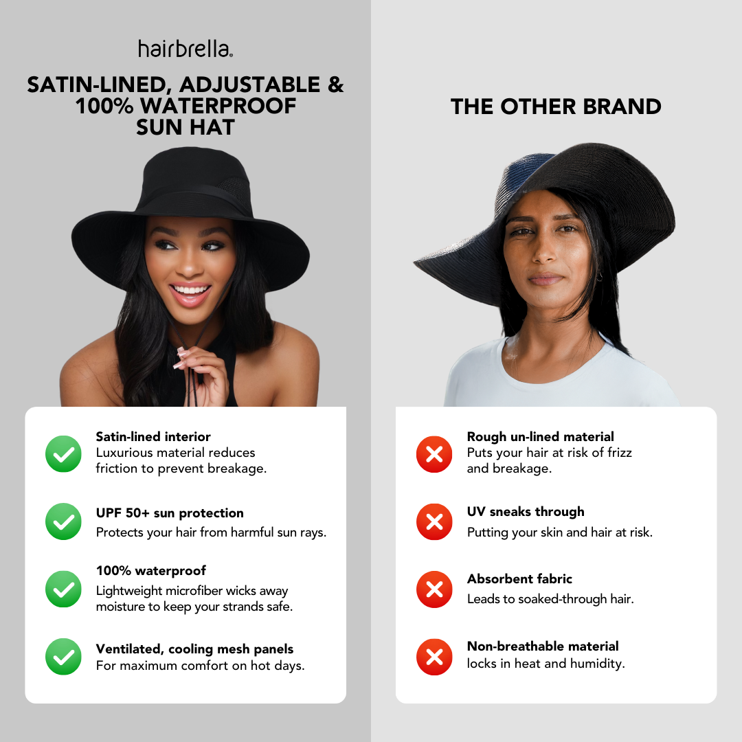 Don't settle for ordinary sun hats that leave you uncomfortable and unprotected. The Hairbrella Sun Hat is the perfect all-weather solution, combining advanced features with chic design for any occasion—from beach days to mountain hikes.