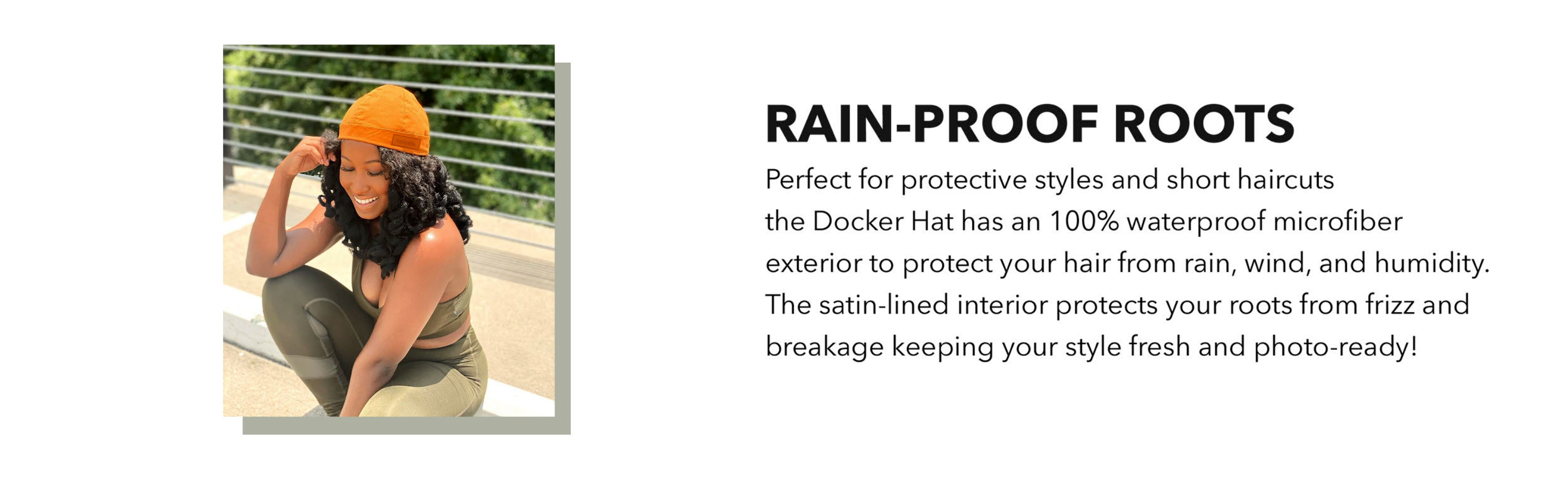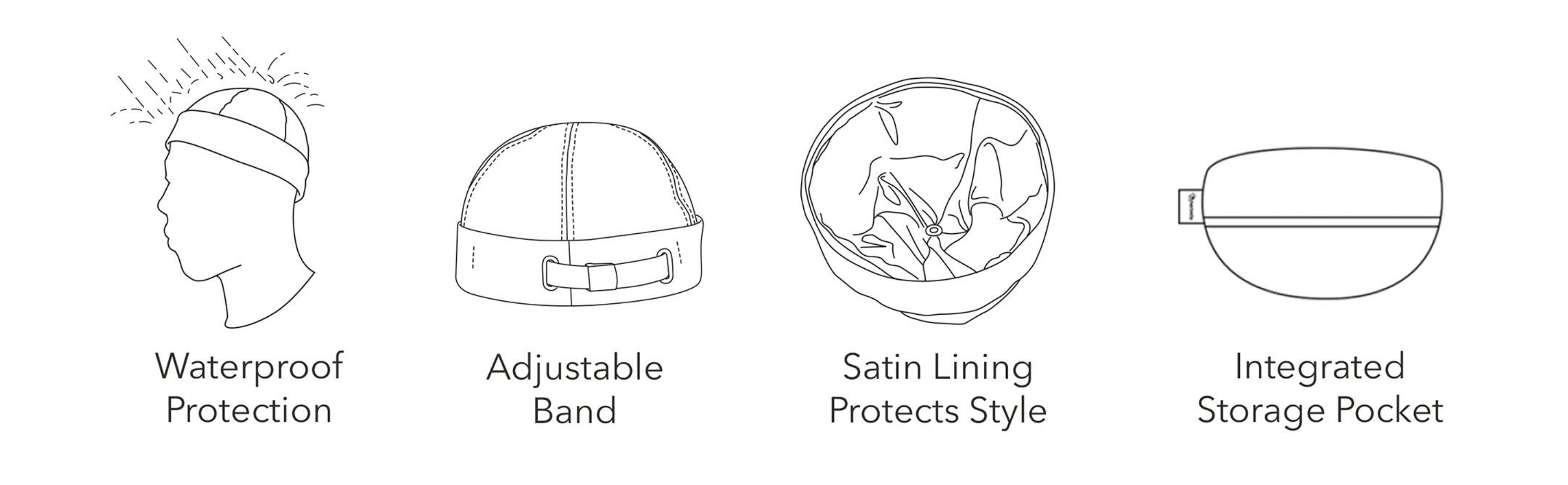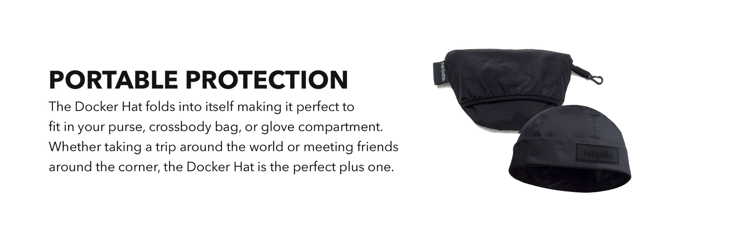Equipped with a satin cap and rain hat in one, the Hairbrella Docker Hat is a perfect choice for the modern, on-the-go man or woman. This unique design provides ample protection to keep your hair dry and style fresh, regardless of the weather.