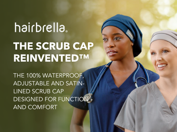 We've upgraded our scrub hats for nurses to include a moisture-absorbent sweatband along with our signature satin lining. The Hairbrella scrub cap is quick-drying and breathable.