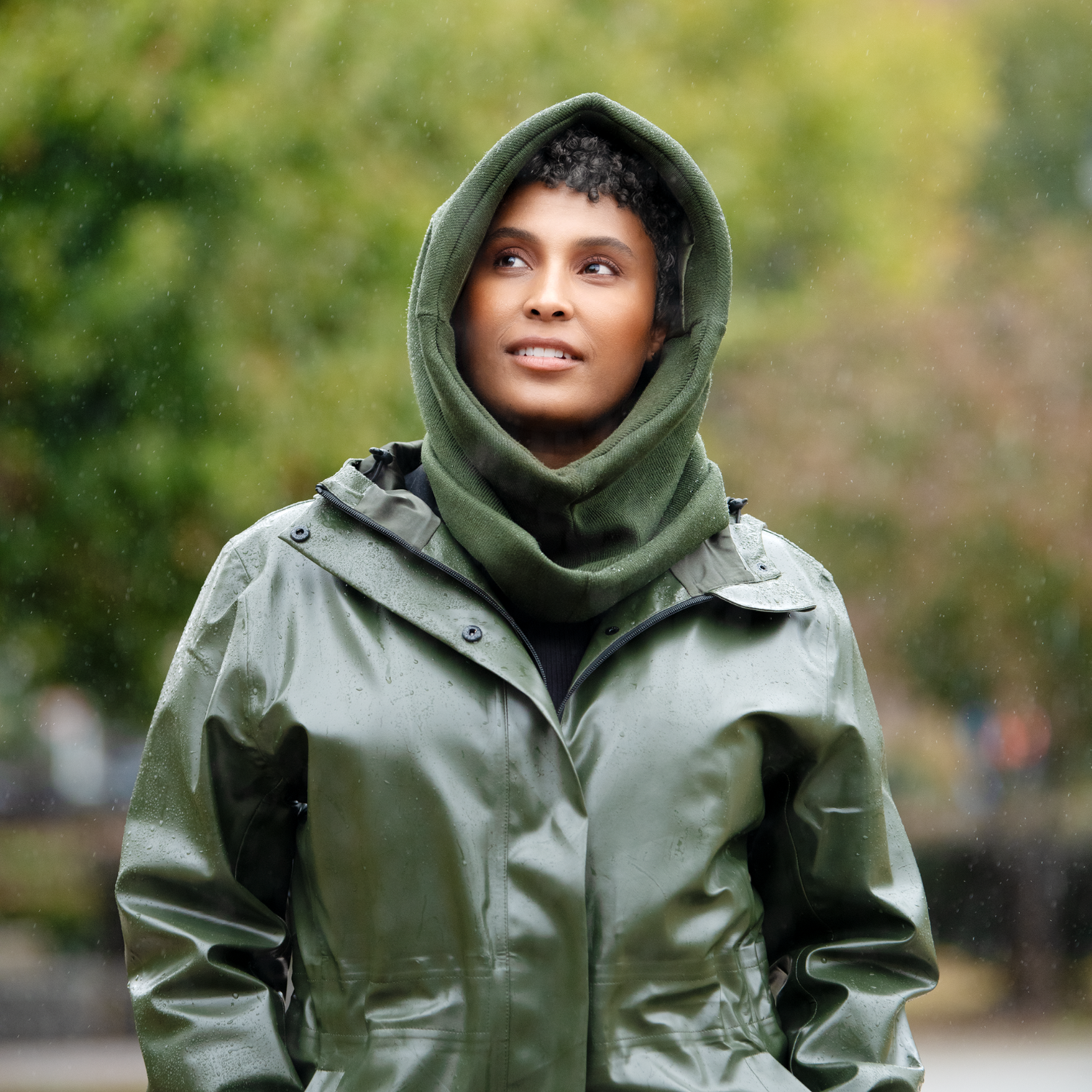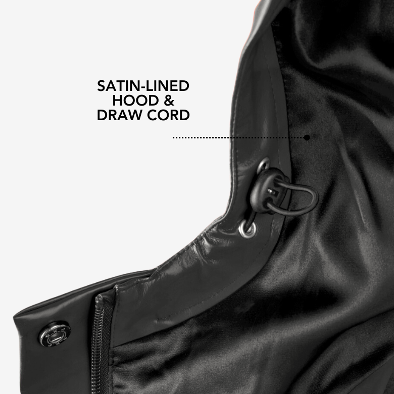 Embrace the rain without compromising your hair's perfection. Our satin-lined hood, designed with a chic visor, offers unparalleled face and hair protection.