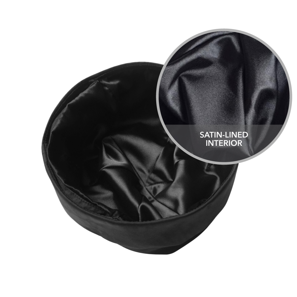Our luxurious material reduces friction to prevent frizz. The satin-lined headband also prevents disruption across your hairline and edges while you rest.