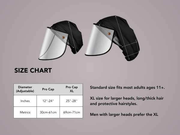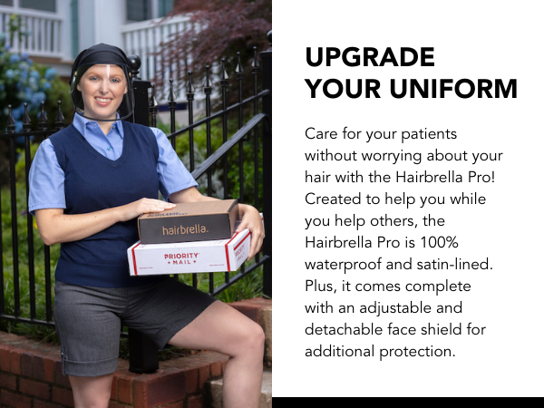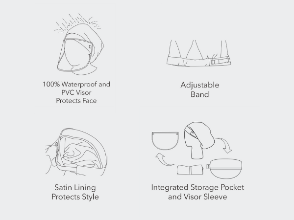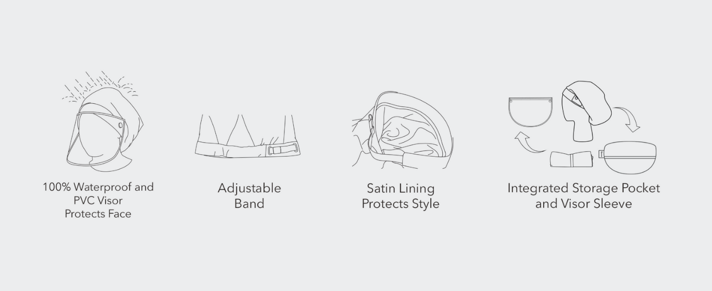 Introducing the Hairbrella Pro XL, a 100% waterproof solution for hair and face protection. Hairbrella Pro combines all of our signature features with the additional benefit of a portable, detachable, and adjustable face shield.