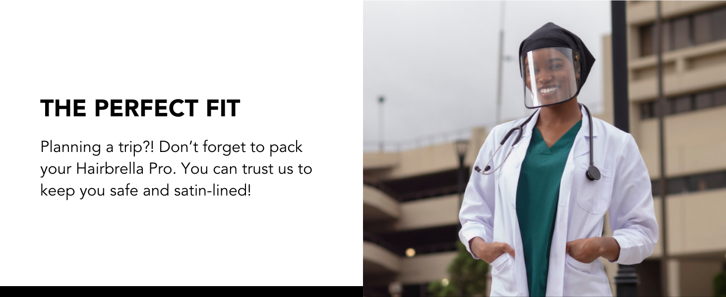 Whether you keep one for yourself or decide to gift them all, The Hairbrella Pro XL bundle is the perfect companion for work and travel. Experience our satin-lined solution to bulky face shields with Hairbrella Pro, safety and style in one!