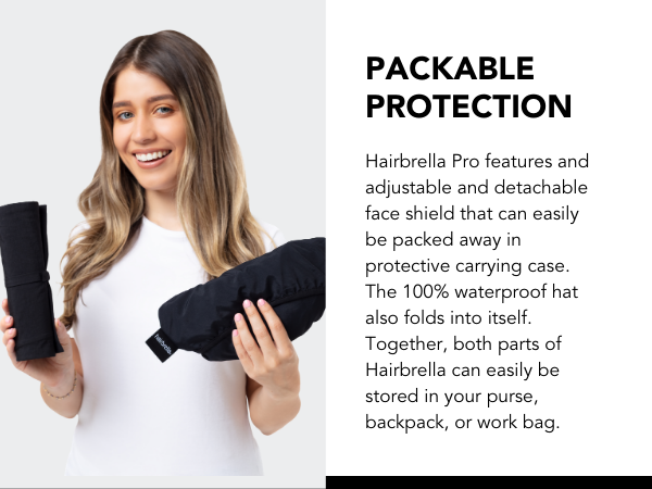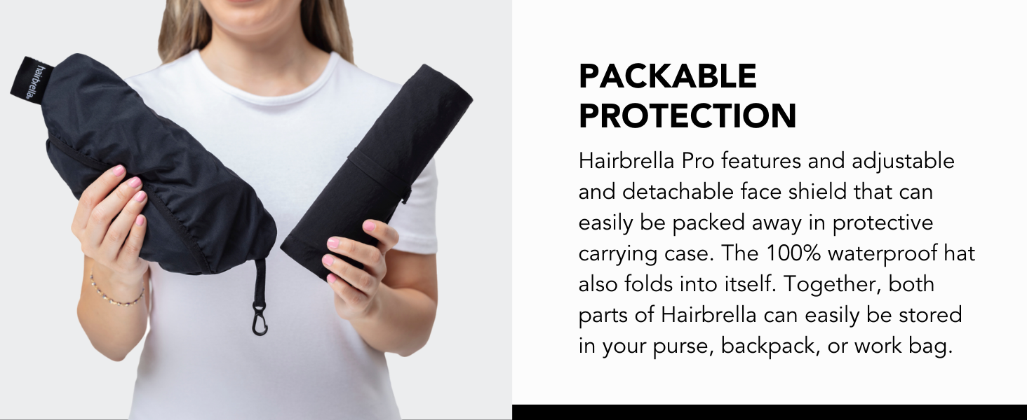 The Hairbrella Pro folds into itself creating portable protection that’s small enough to slip into your purse or glove compartment.