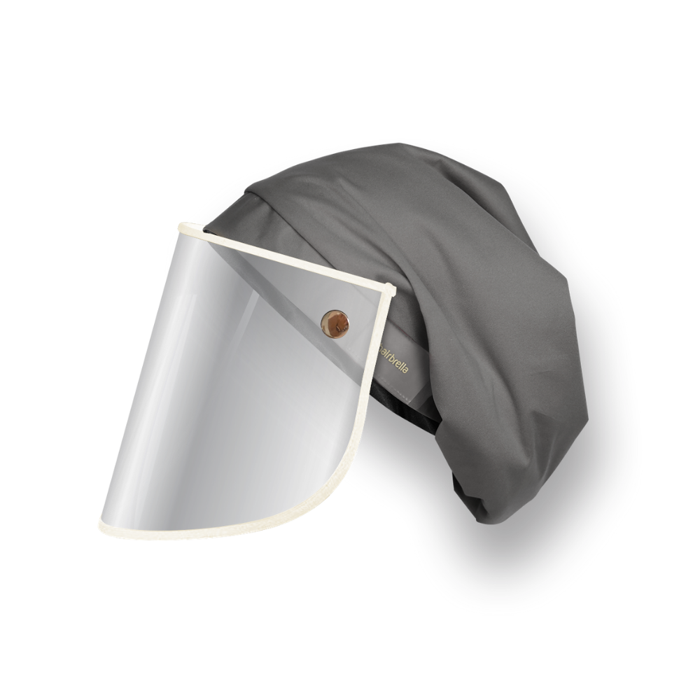Introducing the Hairbrella Pro, a 100% waterproof solution for hair and face protection. Hairbrella Pro combines all of our signature features with the additional benefit of a portable, detachable, and adjustable face shield. Now you can defeat rainy days and harmful elements with one product!