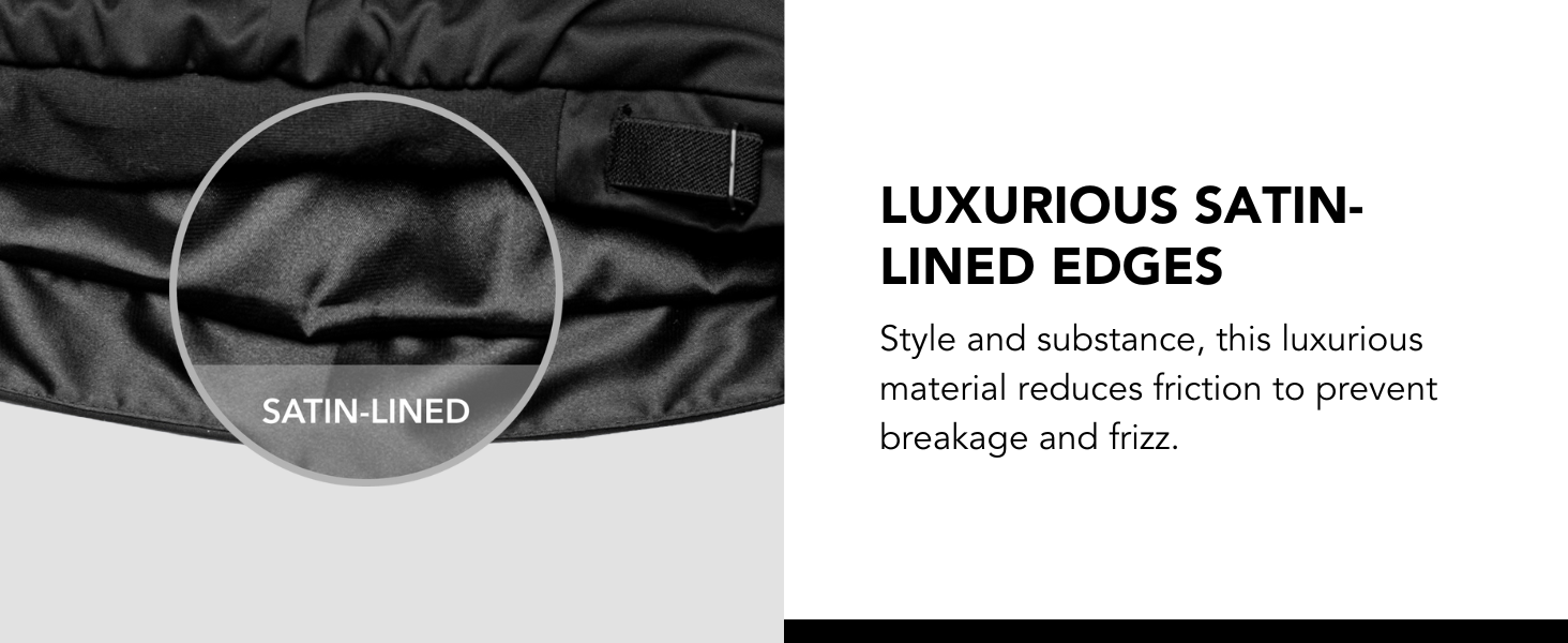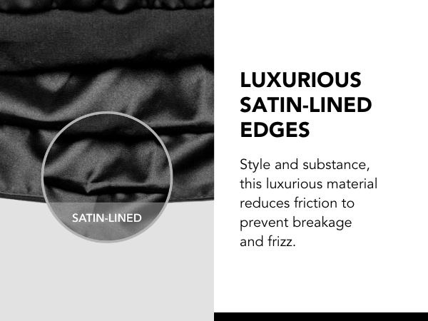 Satin lining reduces friction, prevents tangles, and keeps hair hydrated and protected.