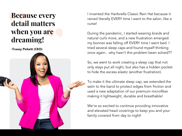 Say goodbye to lost sleep caps and tangled hair, and hello to smooth, frizz-free mornings for your child. With the Hairbrella Kids' Sleep Cap, both you and your little one can rest easy knowing their hair is protected all night long.