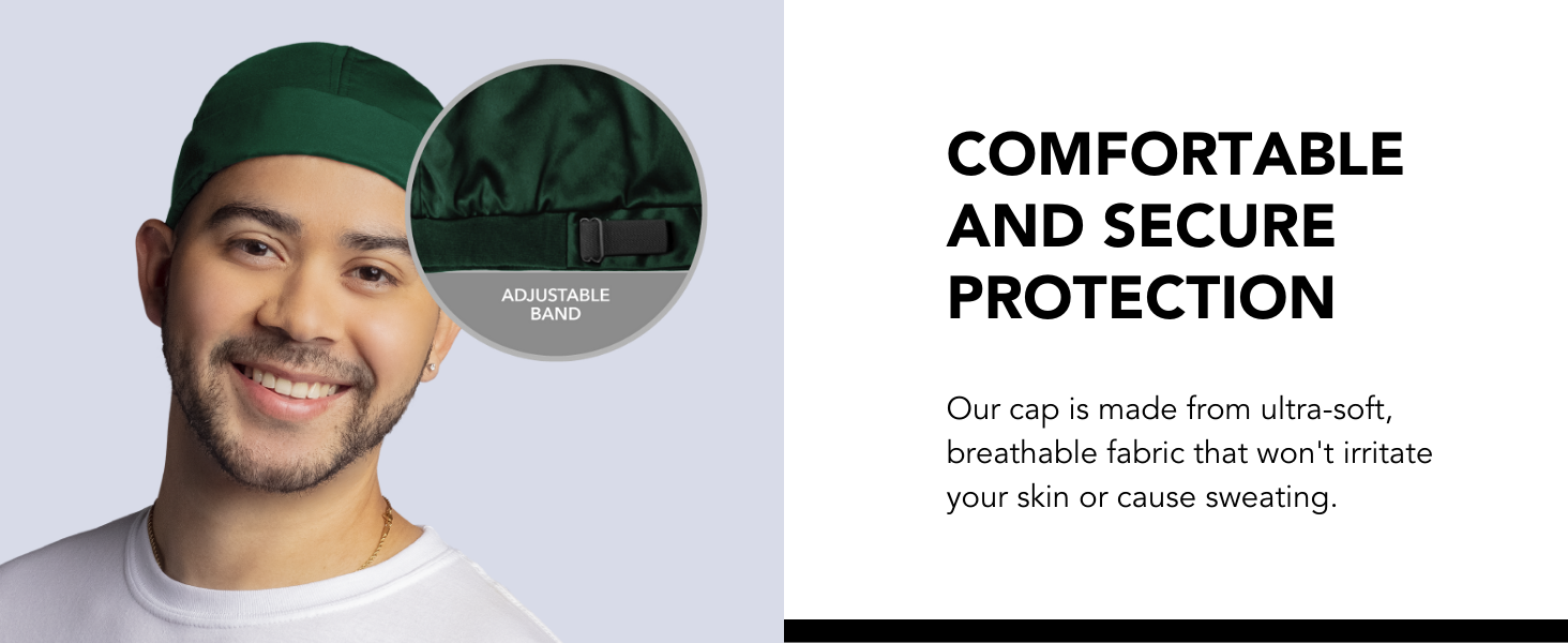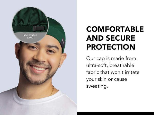Our cap is made from ultra-soft, breathable fabric that won't irritate your skin or cause sweating.