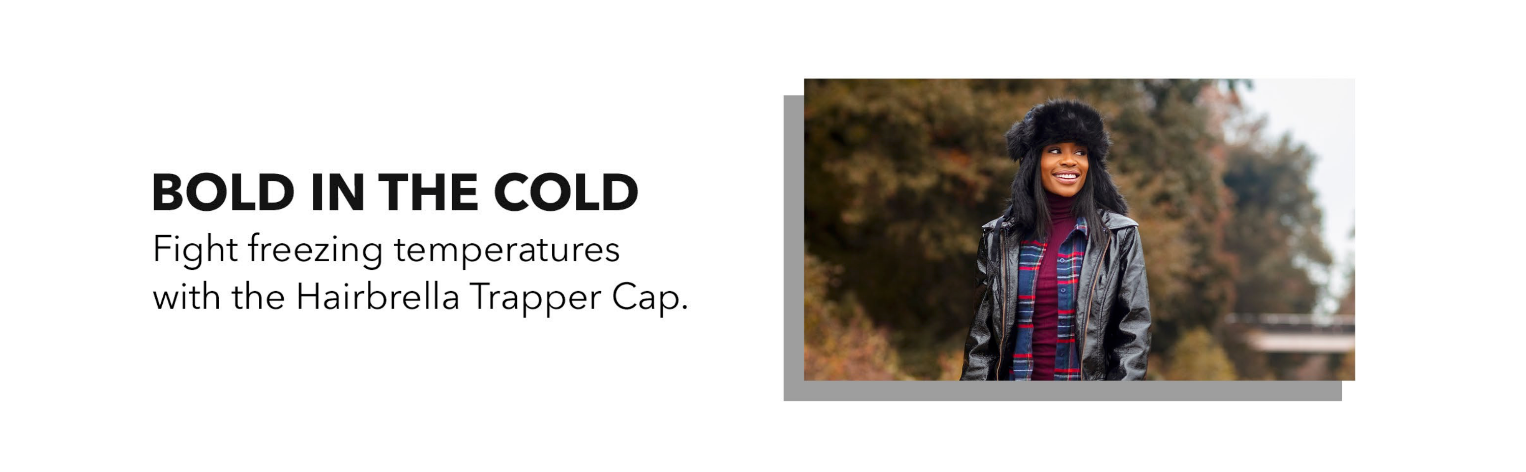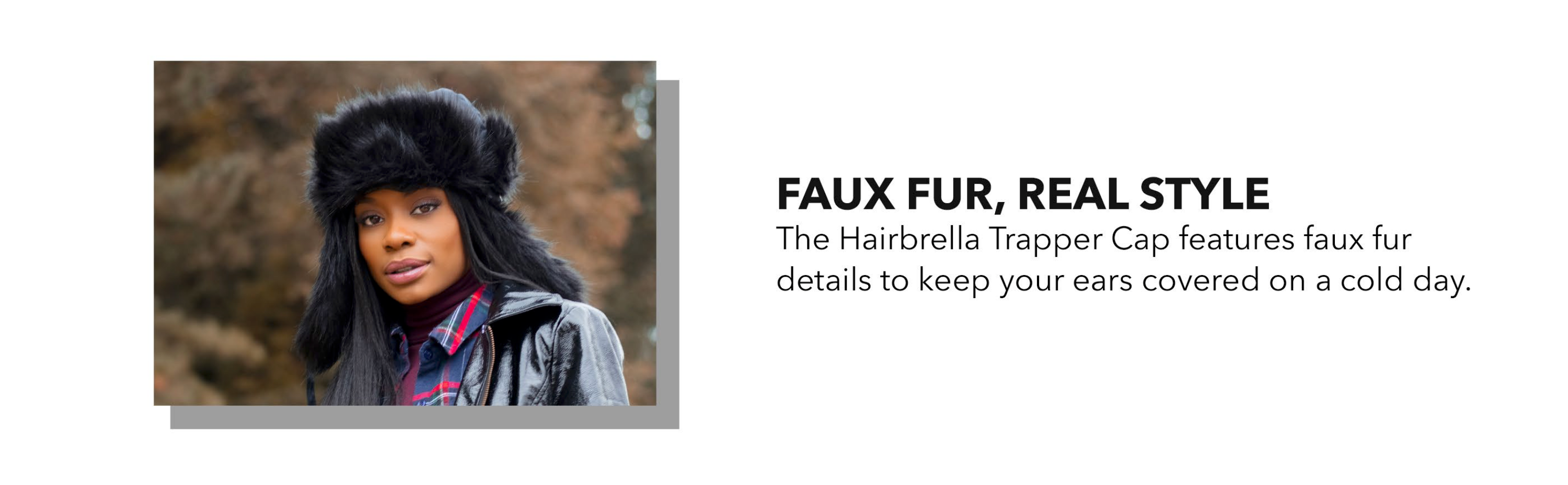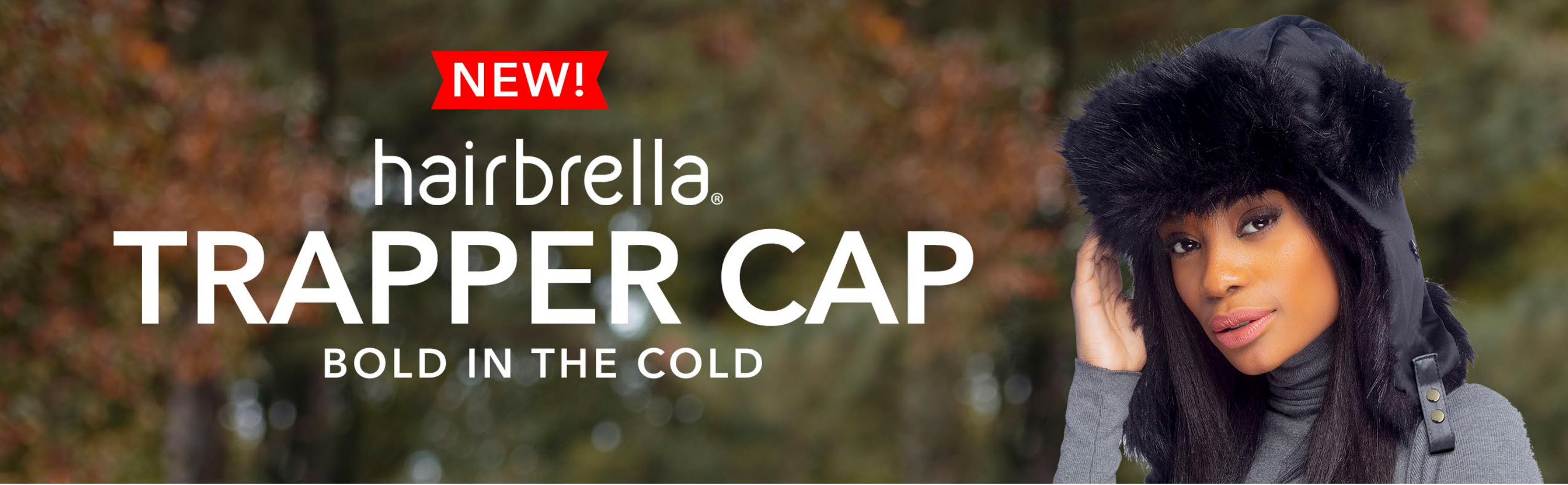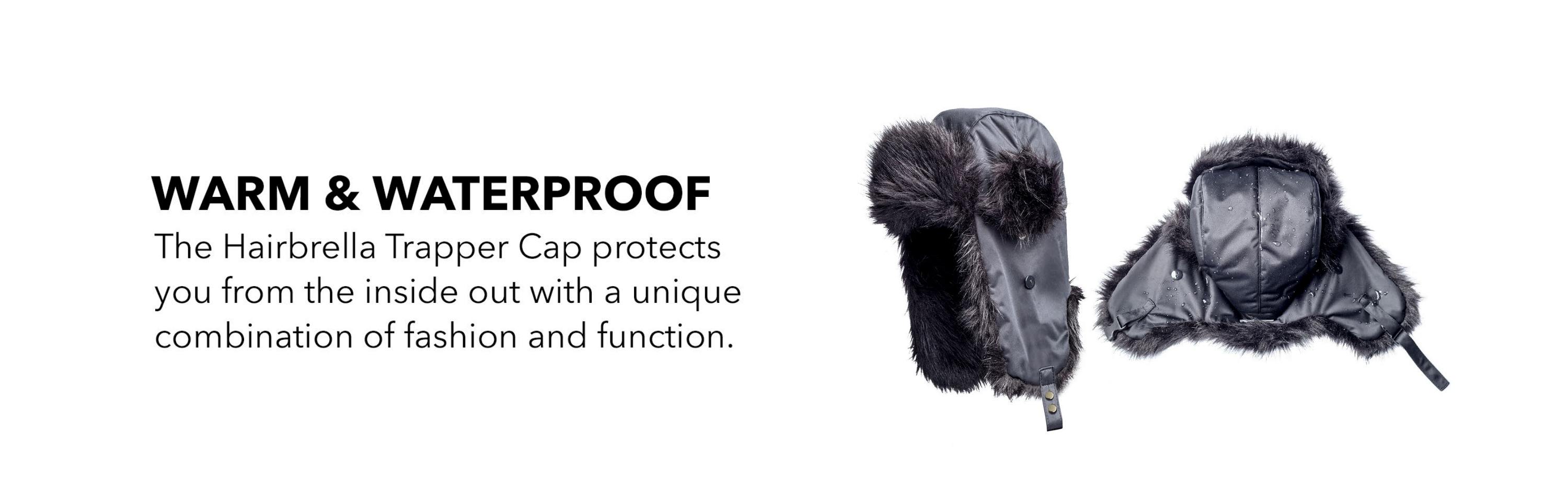 The Hairbrella Unisex Trapper Cap features a chin strap to keep it in place even on the most windy day.