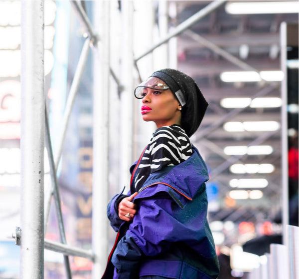 Protects your face, makeup, and glasses from the sun, with a little extra love on rainy days.