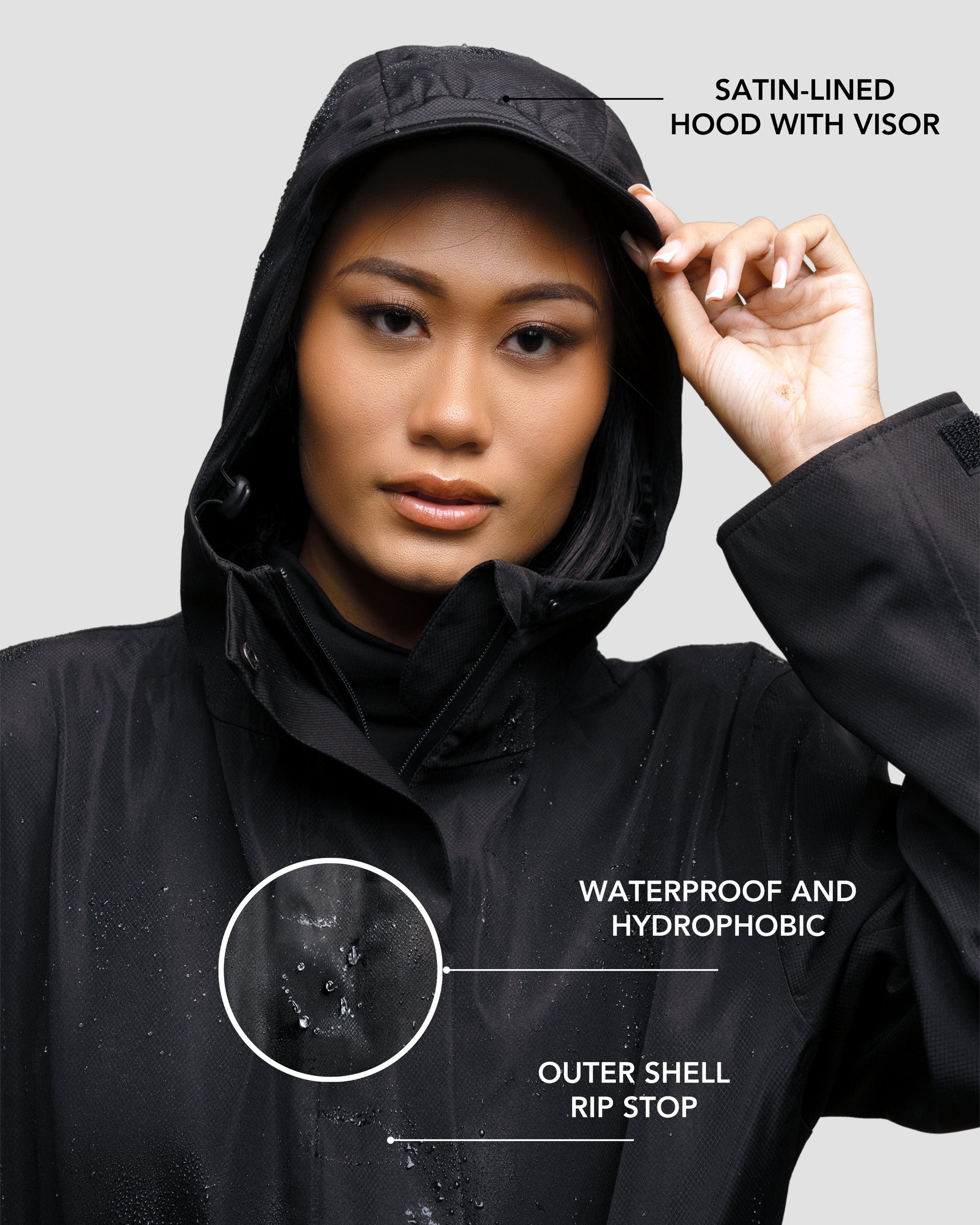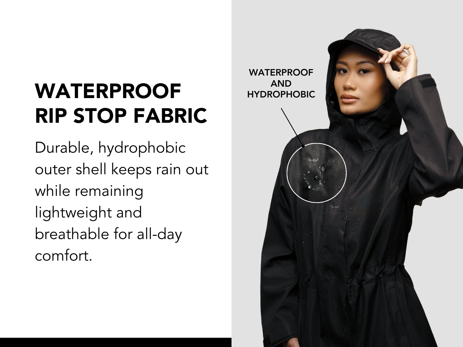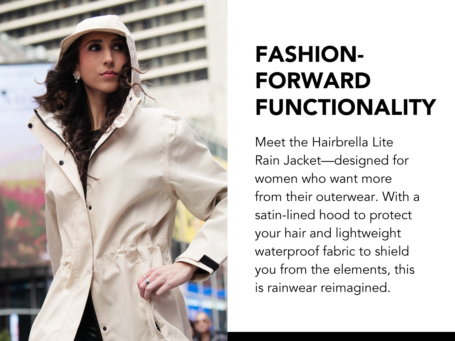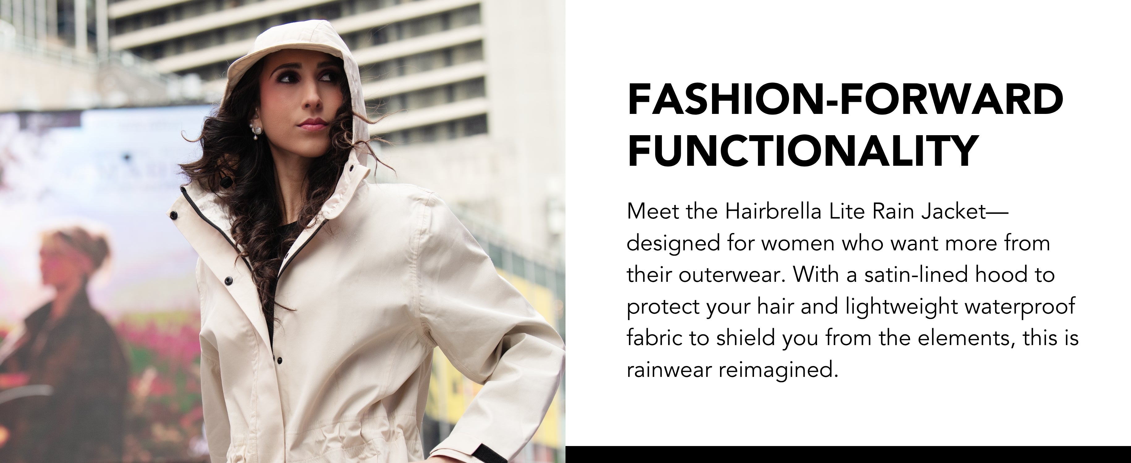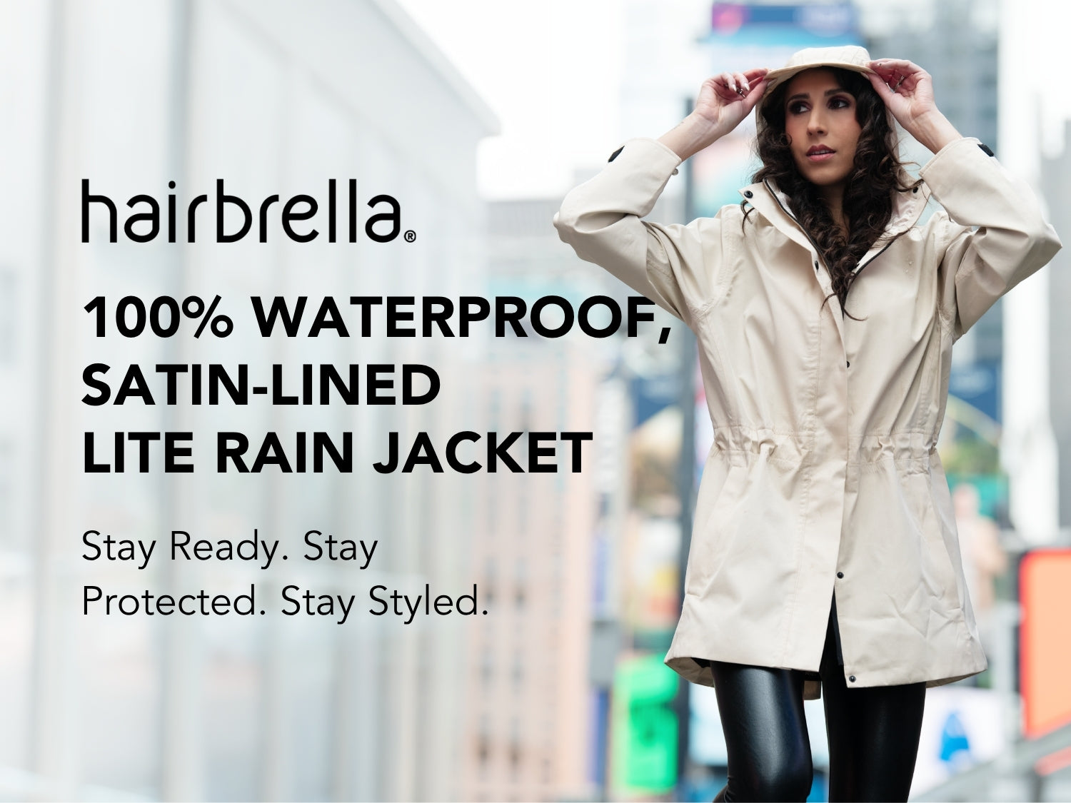 Say goodbye to bulky, boring rainwear that ruins your look. With a lightweight, packable design and hair-protecting technology, you’ll step out in confidence—even in the rain.
