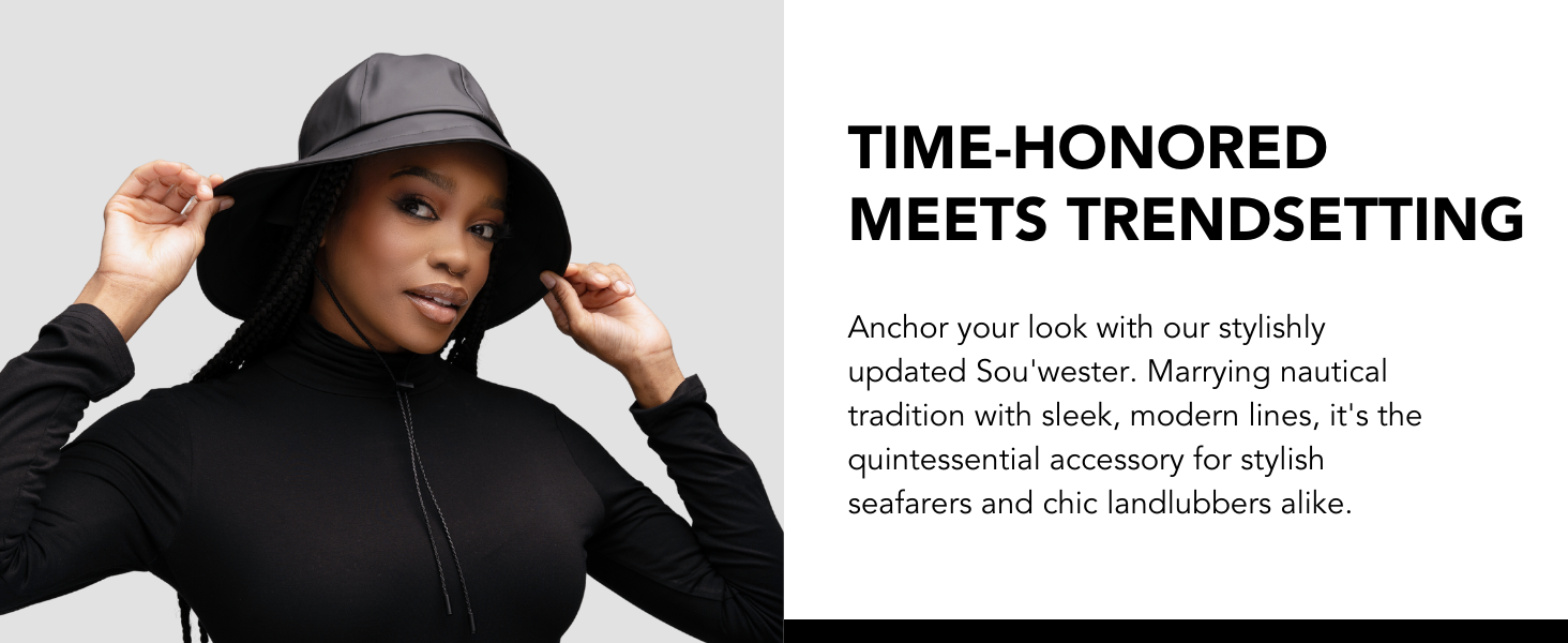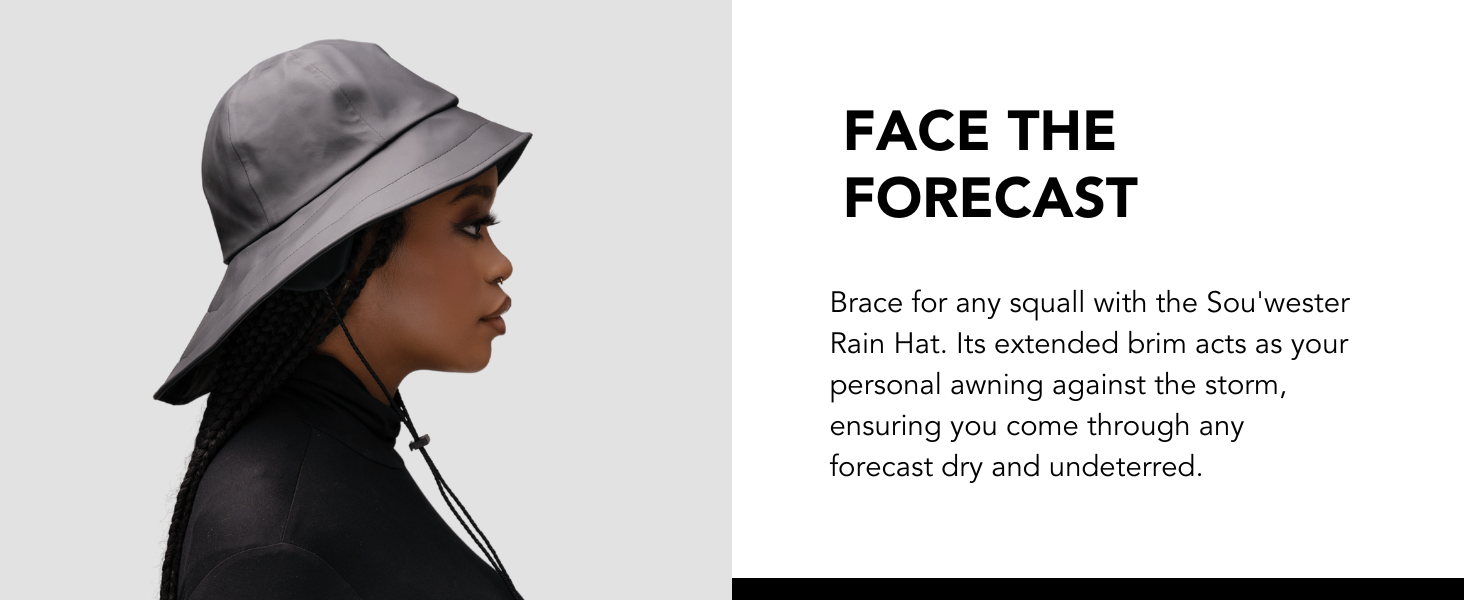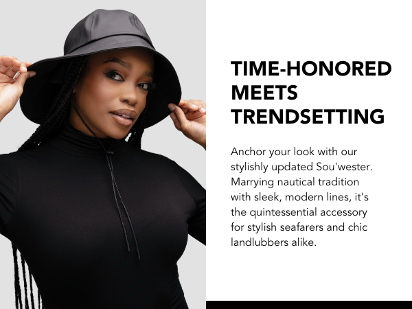 Wave goodbye to weather woes with the chic Sou'wester Rain Hat, updated for the modern fashionista. Originally perfected by fishermen braving the wildest storms, this iconic hat has been transformed with a satin-lined interior and our premium performance fabric to keep you dry without compromising on style.